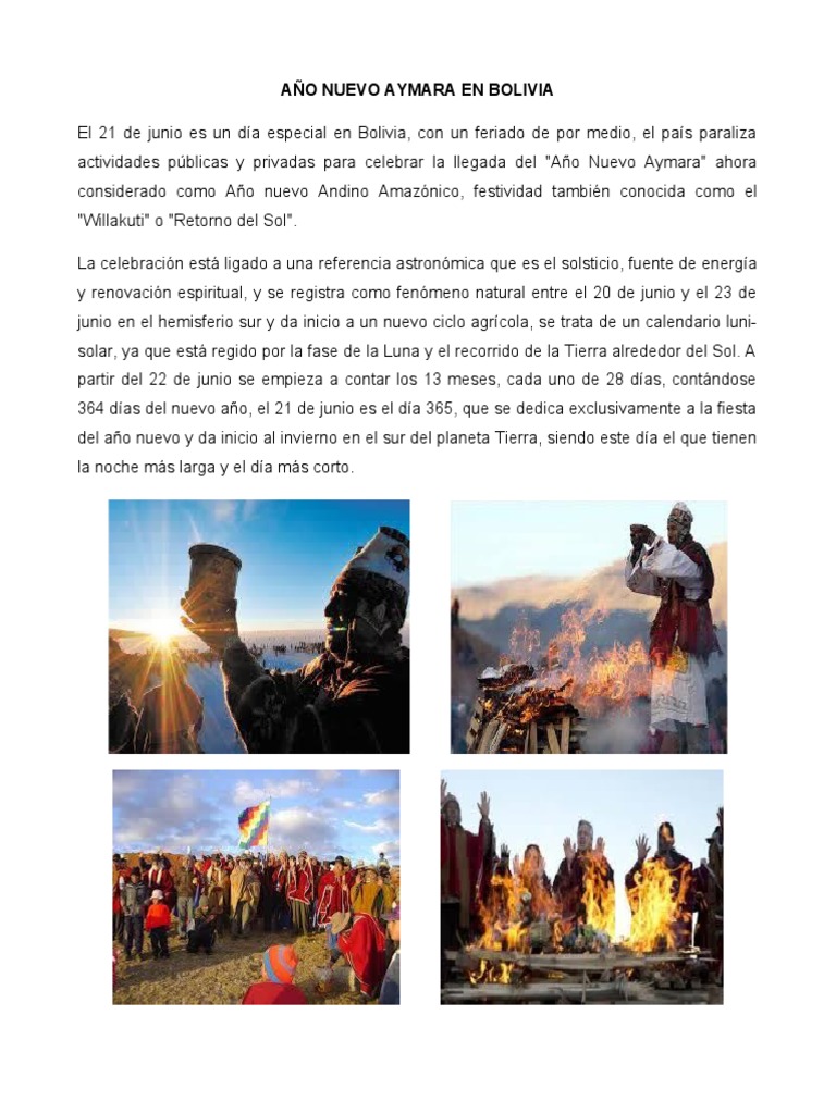 El año nuevo aymará también conocido como ano nuevo andino es una festividad celebra en toda bolivia el 21 de junio de cada año, el festejo fue declarado fiesta nacional en bolivia en 2010 bajo la presidencia de evo morales 21 de junio. Con los registros de hoy, bolivia ya lleva acumulados 343.065 casos de coronavirus desde el.